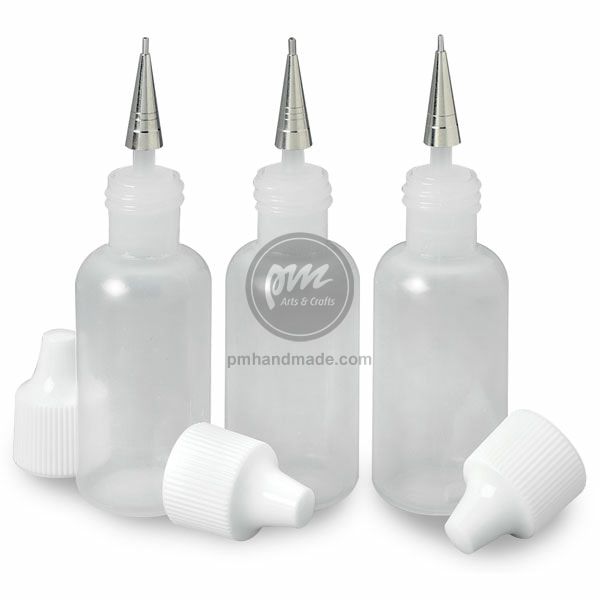 Chai nhựa mềm này được dùng đựng keo, màu hoặc những nguyên liệu lỏng khác kèm các chui kim loại nhỏ 3 size 0.5, 0.7, 0.9 sử dụng dán các chi tiết nhỏ trên các vật liệu như gốm, giấy, vải, trang trí bánh, kẹo, mô hình thu nhỏ...