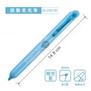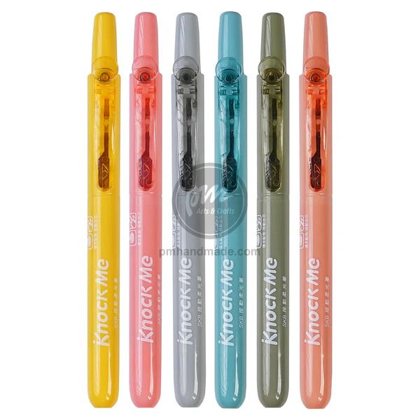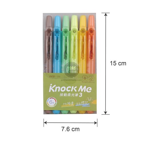 Knock-me IK-2501 là bút dạ quang/bút đánh dấu dạng bấm của thương hiệu SKB (Đài Loan). Bút được thiết kế để viết, tô nổi và vẽ trong sổ tay, planner và tài liệu.