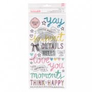 Mô tả sản phẩm: Bộ hình dán (sticker) tập hợp 85 cụm từ và biểu tượng với các màu sắc, kiểu dáng khác nhau thường dùng để trang trí lên sổ planner, scrapbook, thiệp ... Chất liệu giấy dầy, một mặt có ... ... Xem thêm