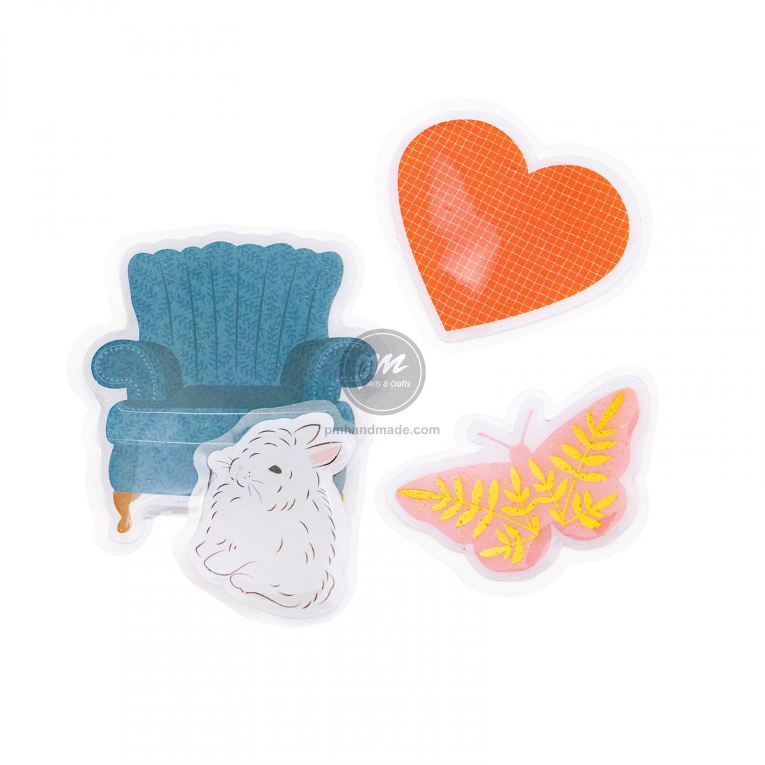 Bộ hình dán sticker này có phủ 1 lớp epoxy lên trên tạo độ nổi và bóng. Dùng để dán trang trí sổ, thiệp, scrapbook. kính, gỗ, nhựa....