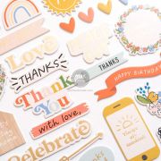 Bộ hình dán (sticker) in hình chất lượng, tập hợp các hình ảnh chủ đề bao gồm 29 câu chúc, cám ơn, hình ảnh đẹp mắt. Thường dùng để trang trí lên sổ planner, scrapbook, thiệp ... Chất liệu foam và giấy, ... ...