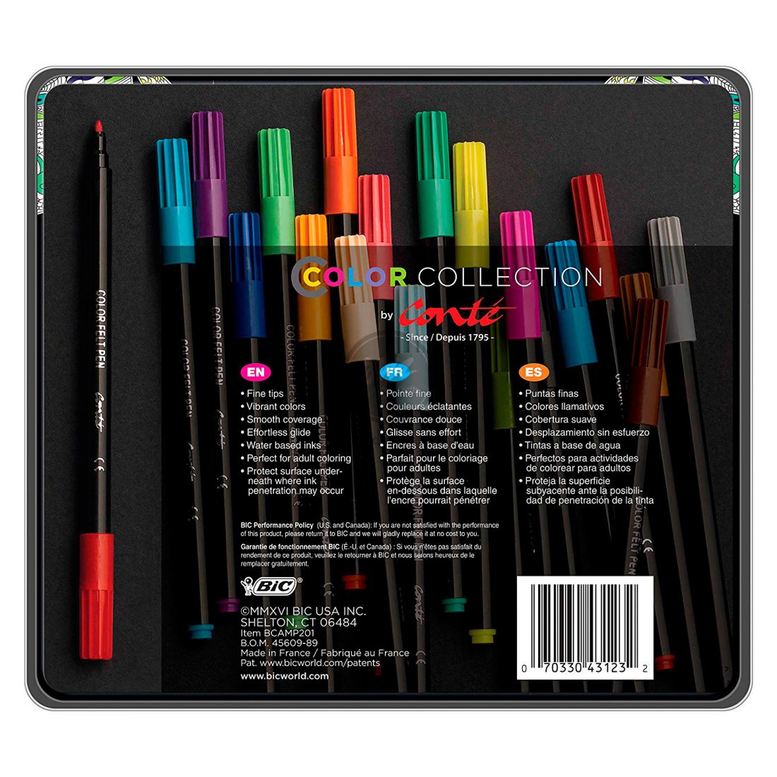 Đây là một sự lựa chọn lý tưởng để tô màu sách và các dự án thủ công khác như vẽ thiệp, scrapbook. Bộ sưu tập này bao gồm một bảng màu bút lông đặc biệt, rực rỡ. Màu mực nước tốt cho phép bạn lướt nhẹ nhàng khi tô màu. Hộp màu đen thanh lịch và nắp bút màu phù hợp với màu mực giúp lựa chọn màu dễ dàng. Bộ sưu tập màu của Conte bao gồm 20 cây bút lông với các màu khác nhau và được đóng gói trong hộp thiếc thuận tiện để dễ dàng cất giữ và vận chuyển.
