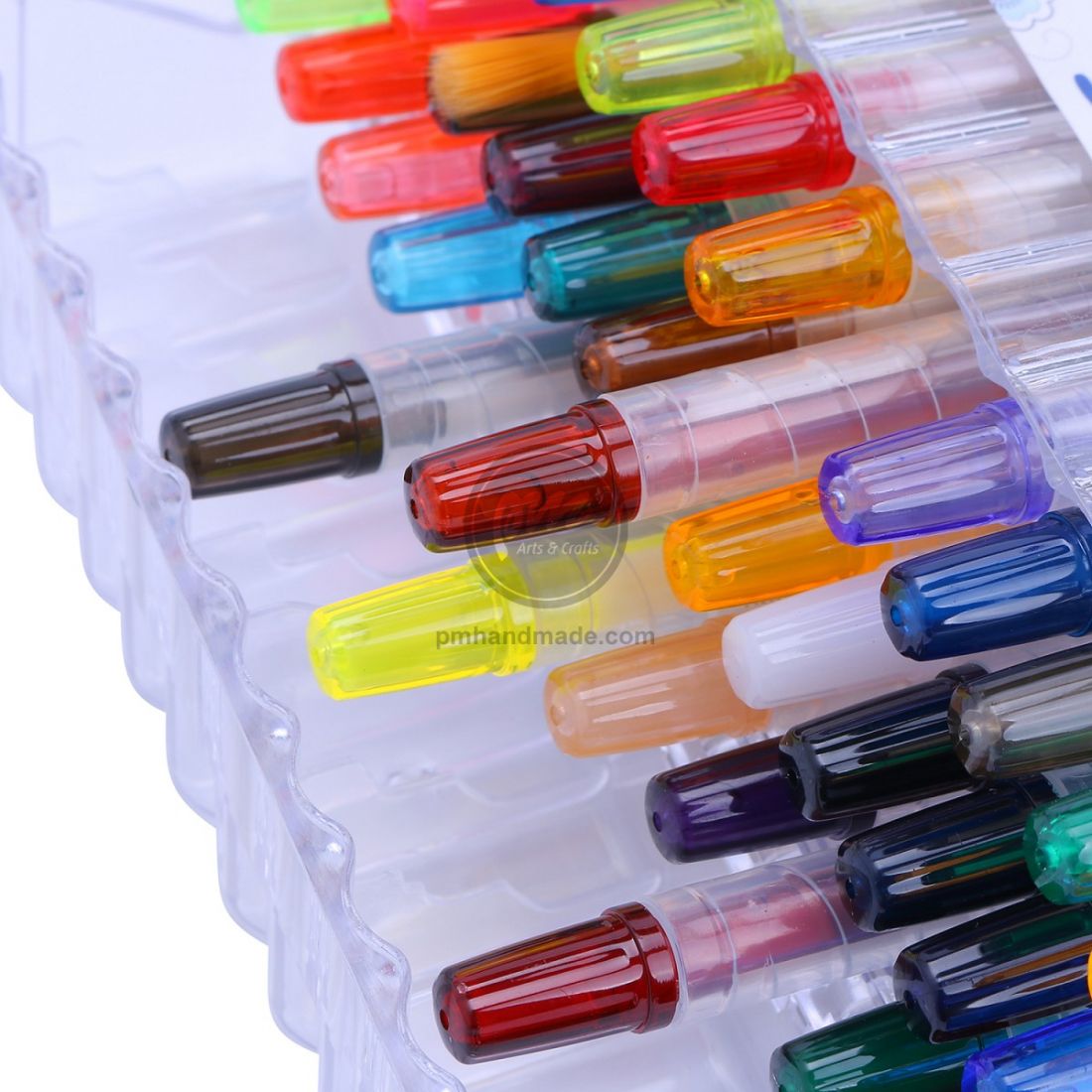 Sử dụng như sáp màu thông thường hoặc sử dụng làm màu nước bằng cách dùng cọ ẩm tô lên phần màu sáp đã tô trước đó. Thiết kế dạng xoay tiện lợi, khi sử dụng bạn chỉ cần xoay nhẹ đầu bút để đẩy phần sáp ra ngoài, rất thích hợp cho trẻ nhỏ vì không phải gọt. Bút sáp màu nước Marvy khó bị gãy ngòi khi va đập, màu sắc bắt mắc, lên đều bám tốt. .jpg)