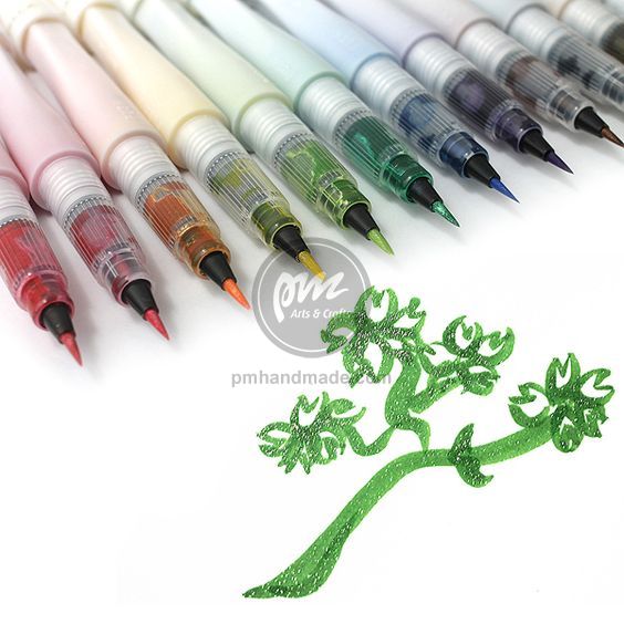 - Bút màu nước Wink of stella của thương hiệu Kuretake, là một dạng bút đặc biệt có thiết kế các hạt lấp lánh ánh màu, làm sáng bừng các mẫu thiết kế của bạn trên bất cứ chất liệu giấy nào .