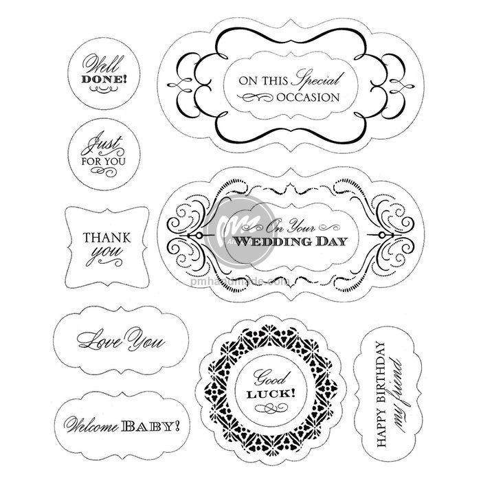 Clear stamp tạo thiết kế trên giấy với chủ đề đủ mẫu nhãn, in đẹp trên mọi chất liệu giấy.