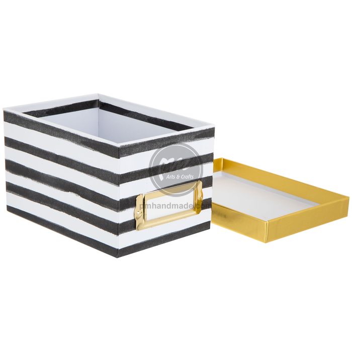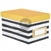 Hộp giấy mini xinh xắn chất lượng cao có in 2 màu đen trắng, và nắp màu vàng, bên hông có gắn khoen kèm giấy chữ nhật để bạn gắn giấy ghi chú vào hộp. Chiếc hộp xinh xắn này rất lý tưởng để lưu giữ và bảo vệ những vật dụng mà bạn yêu thích.
