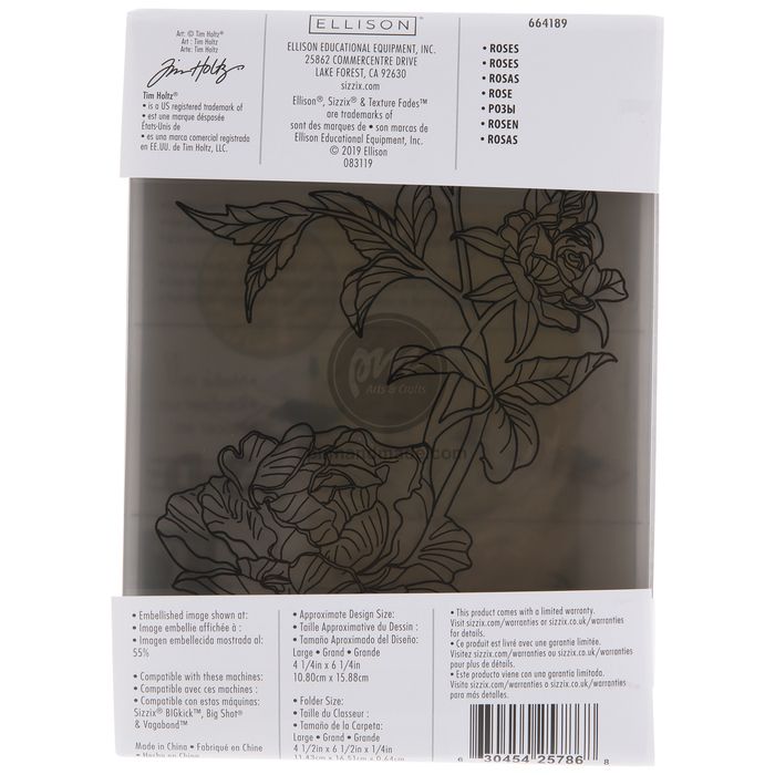 - Tương thích với Sizzix Texture Boutique, BIGkick, Big Shot & máy Vagabond