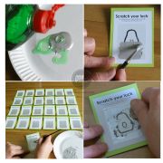 ** Lưu ý : Giấy nên là giấy dầy, in chất lượng tốt và bóng càng tốt cho sản phẩm và quá trình cào. Chỉ cào nhẹ tay là đã loại bỏ được lớp bạc .