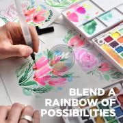 Hộp thiết kế gọn gàng, tiện lợi, thường đi kèm hai bút water brush (*), khay pha màu, giúp người dùng dễ dàng mang theo và sử dụng mọi lúc, mọi nơi.