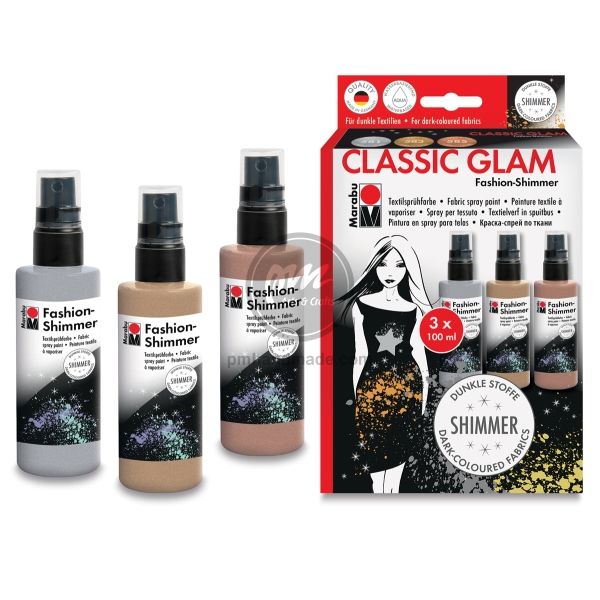 Màu vẽ vải Marabu Fashion Spray thương hiệu đến từ Đức, là một loại sơn phun màu nước tạo hiệu ứng lung linh lấp lánh trên vải. Màu không mùi, không phai màu và mềm khi chạm vào. Tốt trên các loại vải tối với tối đa 20% sợi nhân tạo.