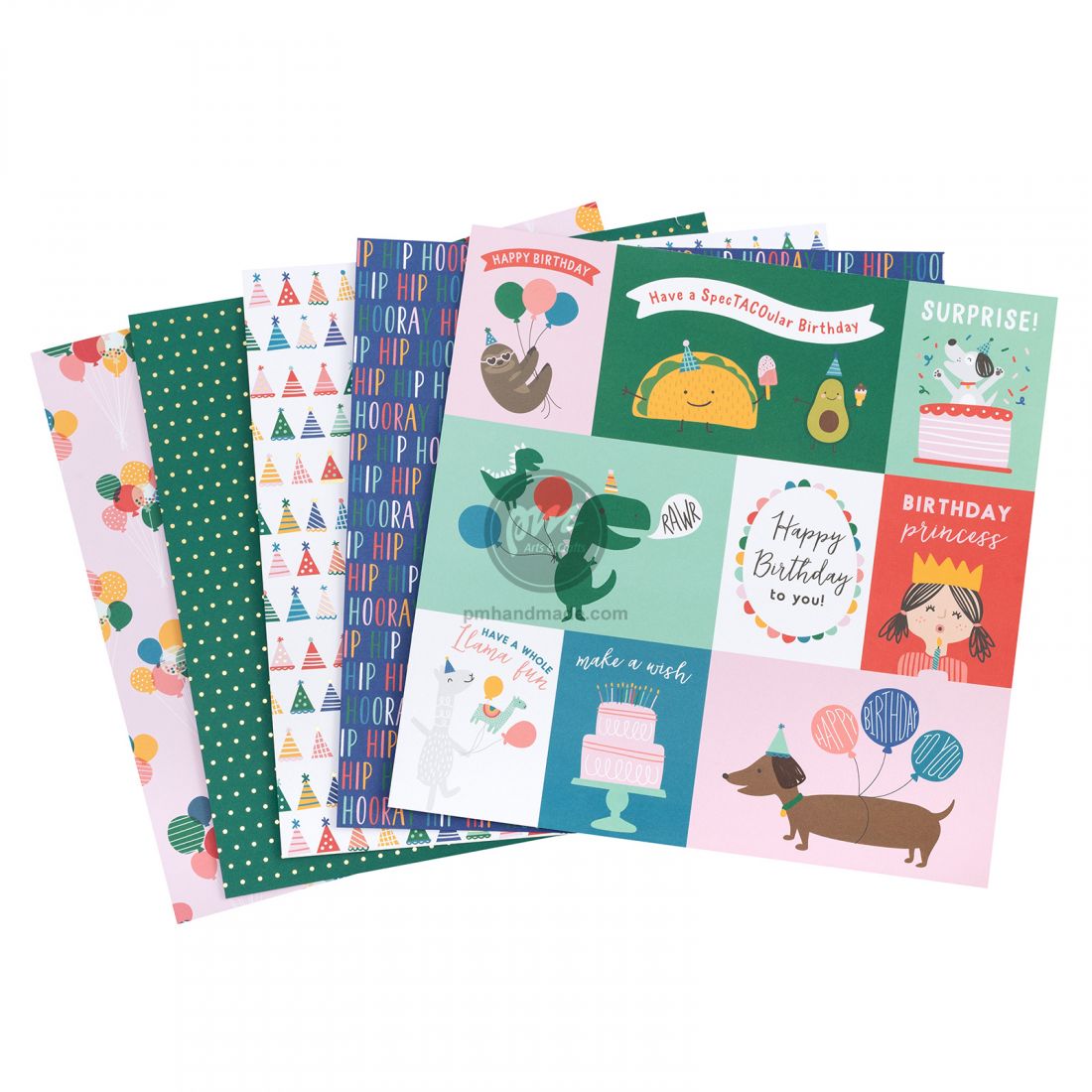Những hoạ tiết trong tập giấy happy cake day này với những gam màu tươi tắn được phối hài hoà bằng những hình nến, nón sinh nhật, bánh kem, hoa, câu chúc mừng...Bộ sưu tập được thiết kế với những hoa văn đầy màu sắc chắc chắn sẽ giúp các dự án của bạn trở nên nổi bật. Chất lượng giấy có thể dùng để decor, trang trí sổ, scrapbook, làm thiệp.