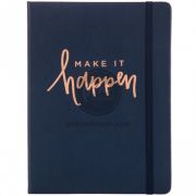 Quyển sổ bìa da này là một quyển sổ kết hợp vừa giúp bạn ghi chú, vẽ phác thảo, với các trang dày cao cấp được trang trí bằng các đường lưới chấm và bìa cứng bọc da màu xanh navy mặt sau để bảo vệ các trang bên trong. Sổ được đóng bìa cứng bên ngoài màu navy với chữ vàng hồng ở mặt trước .
