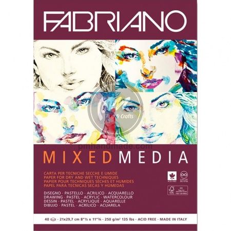 Giấy vẽ Fabriano Mix Media là một loại giấy đa năng. Kết hợp các đặc tính của giấy màu nước và giấy acrylic với các loại giấy vẽ, nên bạn có thể sử dụng làm giấy vẽ nhiều thể loại.