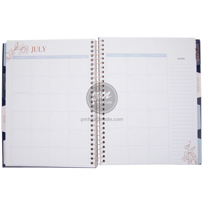 Mỗi trang đều in thiết kế đẹp mắt và có những trang được in họa tiết với vẻ ngoài lấy cảm hứng từ hoa, cánh hoa, với các sọc và nhiều hơn nữa...Những hình ảnh in đáng yêu này được chèn xen kẽ với mỗi trang đánh dấu tháng để tăng thêm sự hứng khởi và đẹp mắt cho quyển sổ của bạn.