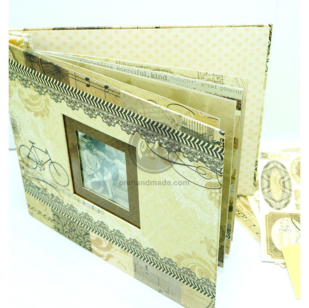 √ Quyển sổ được bao bên ngoài là bìa dầy, kèm theo nhiều lớp giấy bên trong in ấn đẹp mắt, theo chủ đề bên trong có trang trí hình dán sticker. Bạn sẽ nhận được một bộ album lưu niệm, lưu giữ các mốc quan trọng sự kiện của bạn. Bộ này bao gồm mọi thứ bạn cần để lưu giữ những kỷ niệm tuyệt vời của bạn - chỉ cần thêm ảnh và một chút sáng tạo bạn sẽ có một scrapbook tuyệt vời !