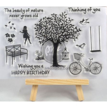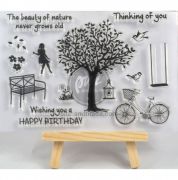 Bộ tem wonderful day in đẹp trên mọi chất liệu giấy. Dấu đế là cao su trong chắc chắn được làm bằng nhựa trong suốt cứng cáp, với hình dạng và thiết kế bao gồm câu chữ như thinking of you, hình cây, xe đạp v,v....Những câu chữ này sẽ giúp bạn bổ sung thêm vào những tấm thiệp theo chủ đề mà bạn muốn gởi gắm vào.