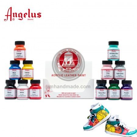 Màu vẽ lên da (leather paint), dùng custom da Angelus không chỉ đẹp mà còn phục hồi da cũ thành da mới với những sắc màu có sẵn trong bộ kit. Lý tưởng vẽ lên giày, ủng, thắt lưng, ví.....,cải tạo các mặt hàng yêu thích, như ví và giày. Sơn chống nước, không độc hại. Màu khô cho chi tiết độ bóng cao trên bề mặt da mà bạn yêu thích !