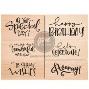 Dấu có thân gỗ phần đế in là cao su màu hồng chắc chắn và được đặt trên khối gỗ. In đẹp trên mọi chất liệu giấy, thích hợp trang trí thiệp, sổ lưu niệm, poster, card. Set bao gồm các chữ