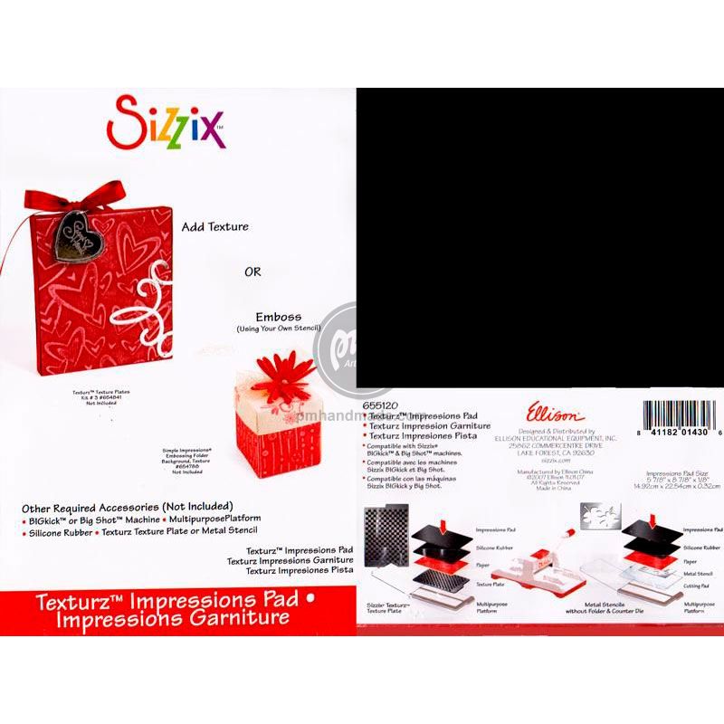 Impressions Pad là một phụ kiện dập nổi đặc biệt được làm đặc biệt cho Sizzix Texturz Plates và một Impressions Pad (tất cả các mặt hàng được bán riêng).