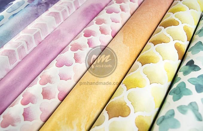 Lấy cảm hứng từ nghệ thuật màu nước tinh tế, bộ giấy gồm 20 thiết kế độc đáo, màu sắc mềm mại, sang trọng, dễ phối và phù hợp với nhiều phong cách sáng tạo khác nhau. Phù hợp cho cả người mới bắt đầu và người làm thủ công chuyên nghiệp.