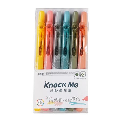 Knock-me IK-2501 là bút dạ quang/bút đánh dấu dạng bấm của thương hiệu SKB (Đài Loan). Bút được thiết kế để viết, tô nổi và vẽ trong sổ tay, planner và tài liệu.