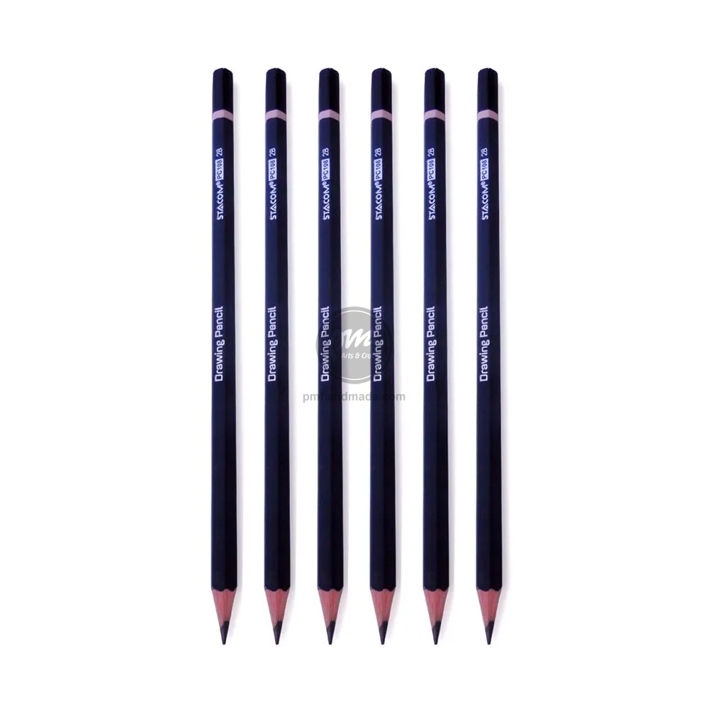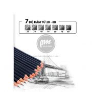 Bút chì có độ đậm nhạt theo từng phân loại 2B/3B/4B/5B/6B/7B/8B (Lưu ý: số B càng cao, ruột chì càng đậm)