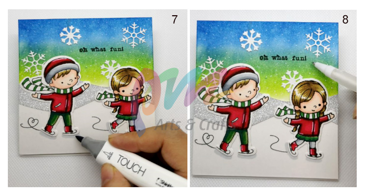 Hinh 7: Tạo bóng cho đôi giày trượt tuyết bằng màu Copic marker ghi xám.