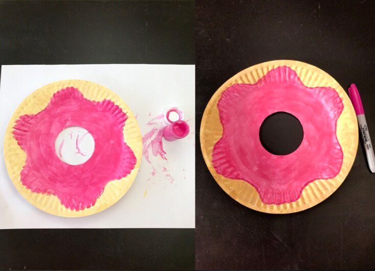 B3: Sau khi tô nền xong, mình sẽ dùng bút sharpie màu hồng tô phần viền bánh donut bên ngoài