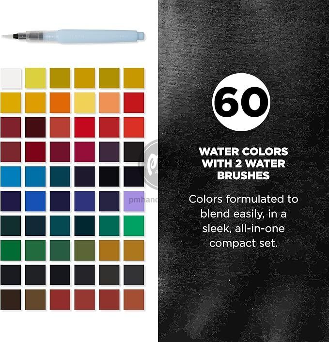 Hộp thiết kế gọn gàng, tiện lợi, thường đi kèm hai bút water brush (*), khay pha màu, giúp người dùng dễ dàng mang theo và sử dụng mọi lúc, mọi nơi.