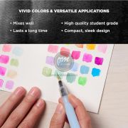 Hộp thiết kế gọn gàng, tiện lợi, thường đi kèm hai bút water brush (*), khay pha màu, giúp người dùng dễ dàng mang theo và sử dụng mọi lúc, mọi nơi.