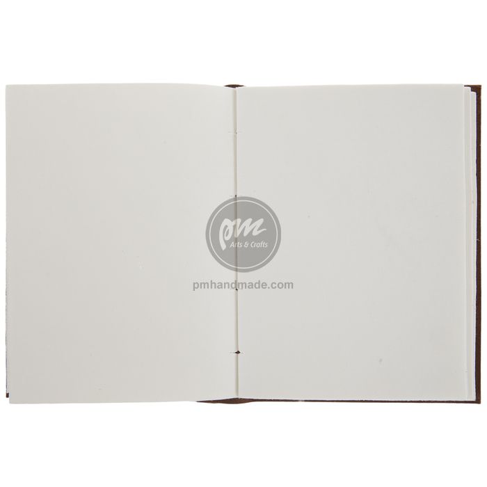 Sổ có bìa da màu nâu mềm mại, có đinh tán kim loại màu đồng cổ ở mặt trước và đường dây khâu màu đỏ bên cạnh. Bên trong giấy được làm bằng thủ công màu kem cổ điển không bị ố vàng theo thời gian. Thích hợp để các bạn vẽ phác thảo, ghi chú.