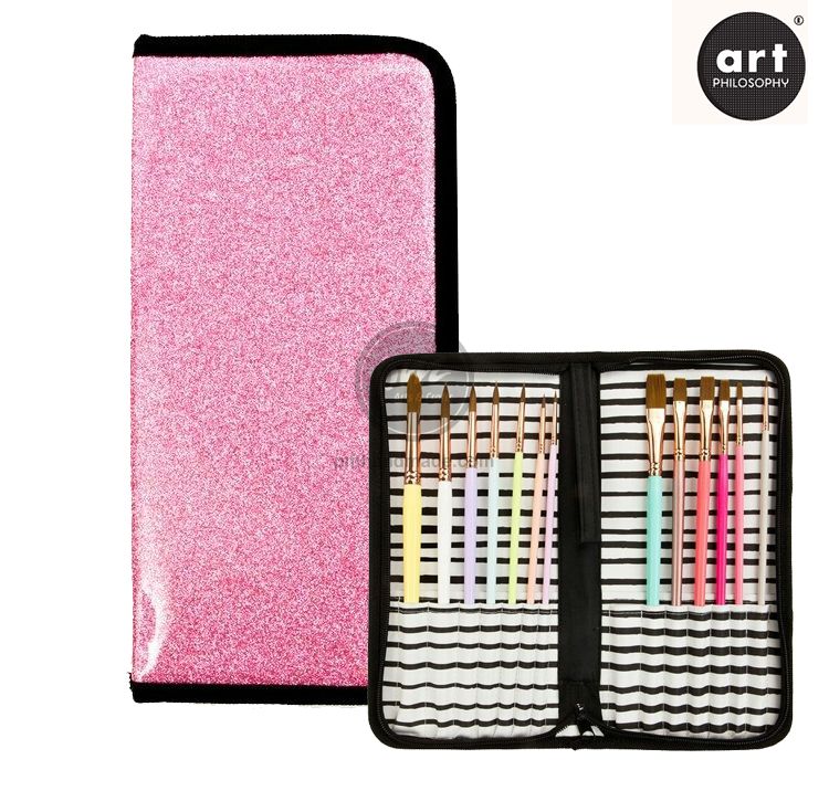 √ Bao gồm một túi đựng cọ bằng vải canvas , phủ kim tuyến màu hồng bên ngoài